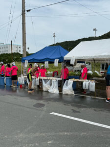 また見失ってしまうといけないので、急いで食べて最後の種目のRUNで声をかけるべくエイドステーションで待ち伏せしました👀
