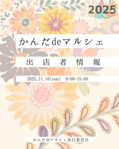 11/16(日)かんだ整形外科リウマチ科前の駐車場で、毎年恒例の「かんだdeマルシェ」が行われます